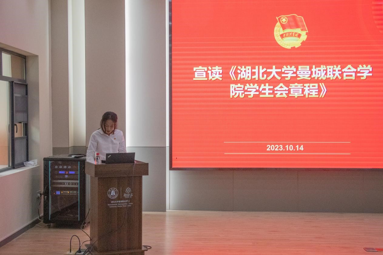 院团委组织部梁筱衡同学宣读《suncitygroup太阳集团五四评优细则(修正案)》,院员工会刘一帆同学宣读《suncitygroup太阳集团员工会章程》。