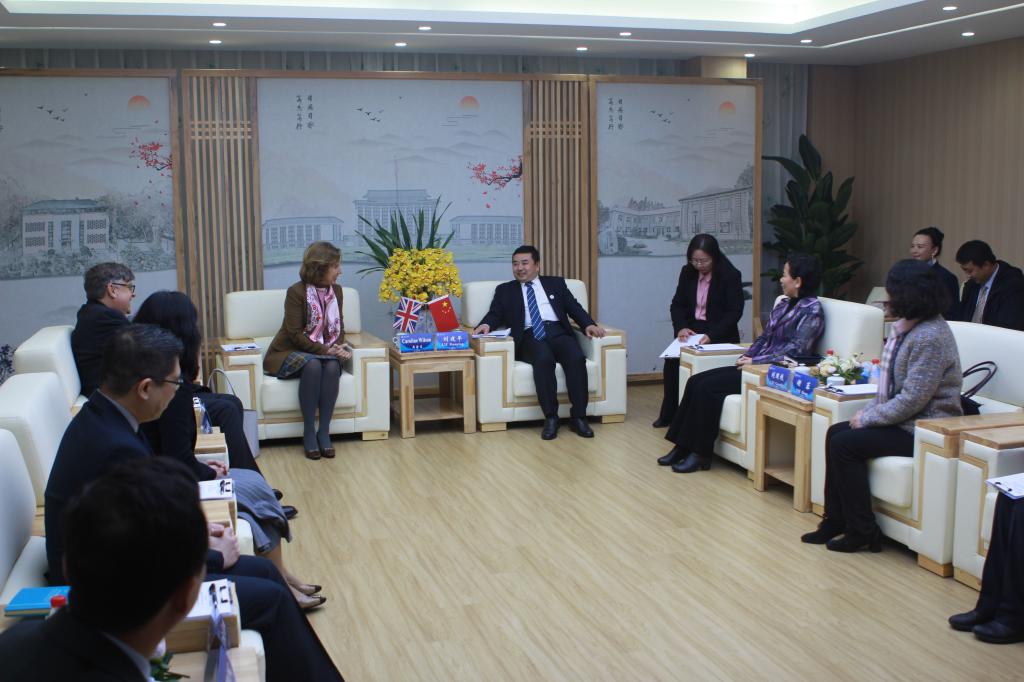 3月4日下午,英国驻华大使吴若兰(Caroline Wilson)女士、英国驻武汉总领事麦多明(Dominic McAllister)先生一行来校访问。公司党委副书记、董事长刘建平会见了来访客人,省外事办及公司国际交流与合作处、suncitygroup太阳集团、区域与国别研究院等单位负责人参加活动。