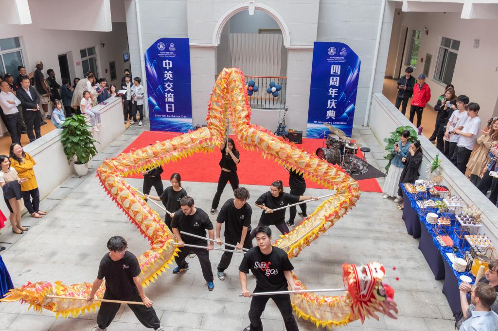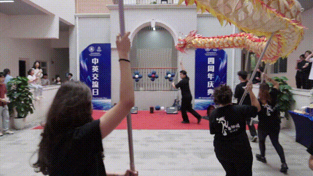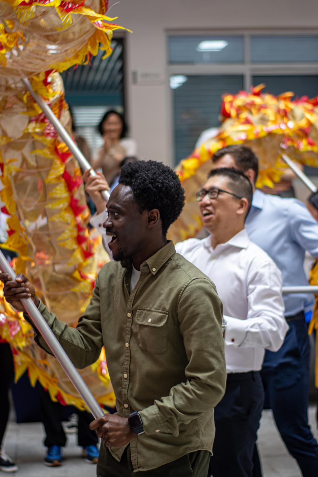 国际员工的舞龙表演