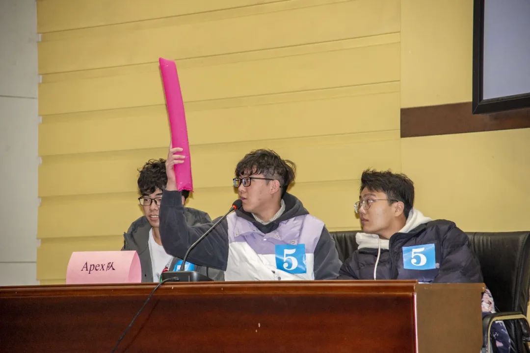 第二个环节“琴园金话筒”,主要考验选手们的反应与应变能力,根据所给题目进行抢答,其中,抢答最快且准确率最高的是Apex队。