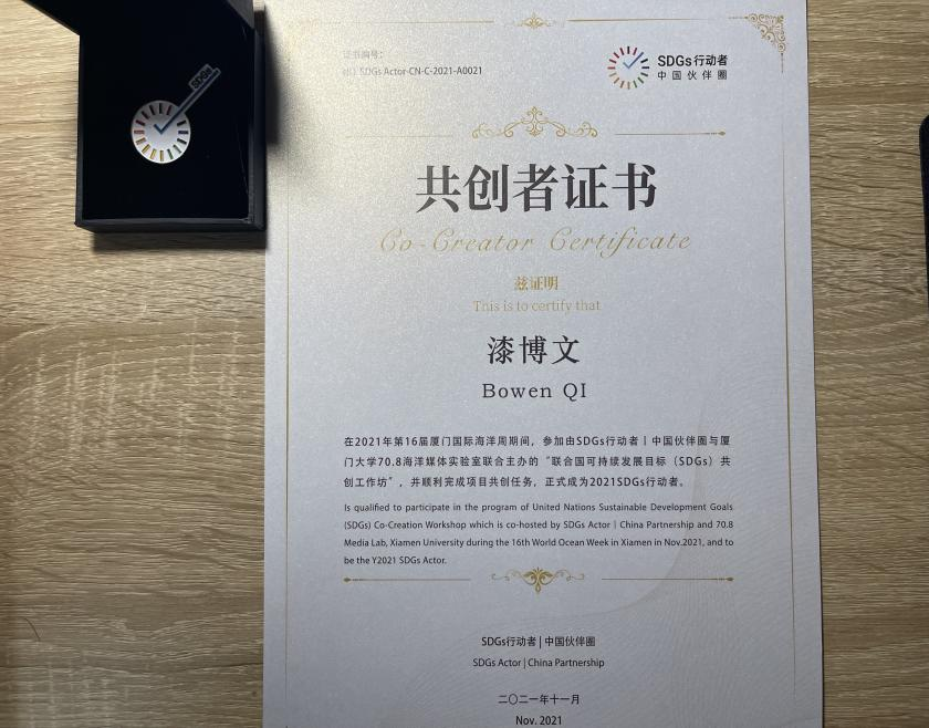 “机会总是留给那些有准备的人”,利用周末时间,漆博文与艾典一同组队,参加了“2021厦门国际海洋周|联合国SDG共创工作坊”招募活动,并获得“共创者证书”。一次地铁上的交流,让他们决定创立suncitygroup太阳集团“3D创印社”。该社团致力于“3D打印技术”的实践操作和灵活应用,注重培养创新设计能力、结构分析能力、三维空间思维能力以及综合应用知识的创新能力。